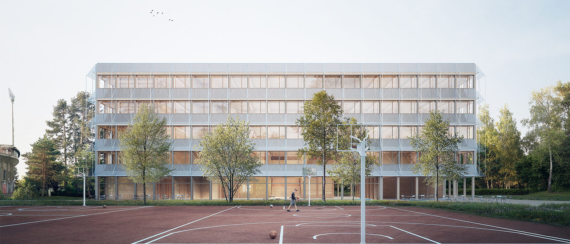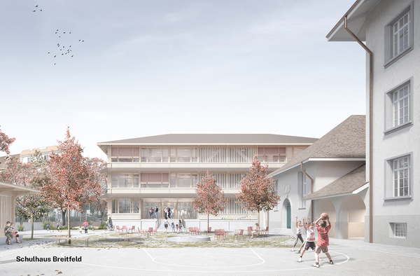 Auch der Beitrag zur Erweiterung der Volksschule Breitfeld in Bern ist für das Team ein Erfolg – trotz drittem Platz. Die Schule mit über hundertjähriger Geschichte konnte mit einem sensiblen Holzbau ergänzt werden. Das kompakte Volumen überzeugte architektonisch wie wirtschaftlich und leistete einen Beitrag zur ressourcenschonenden Stadtentwicklung.