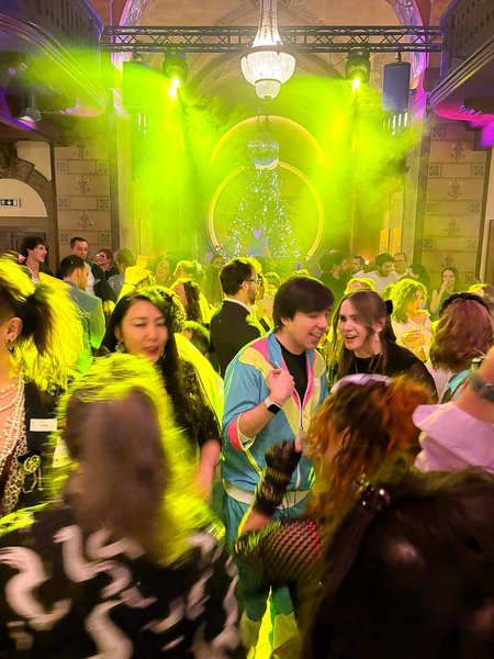 Das diesjährige Motto lautete: Die 80er Jahre – bunt, laut und futuristisch! In leuchtenden Neonfarben, mit Schulterpolstern und Karottenhosen tauchten unsere Teams ein in die Ära der Mixtapes und legendären Hits von Künstler:innen wie Michael Jackson, Madonna, Prince und David Bowie. Fantasievoll gekleidet und bestens gelaunt genossen alle einen Abend voller Musik, Retro-Charme und guter Gespräche.