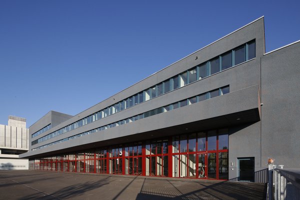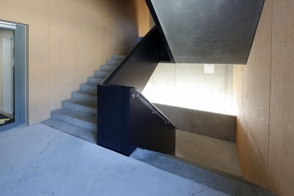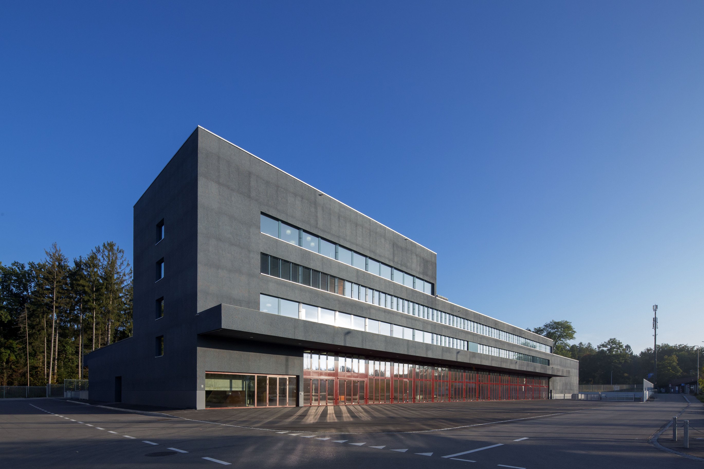 Wie ein städtebaulicher Vermittler schiebt sich das Feuerwehrgebäude zwischen die Energiezentrale im Westen und den Werkhof im Osten. So ist der lang gezogene Haupttrakt ebenfalls grossvolumig und weist fünf Geschosse sowie einen akzentuierten Westkopf auf.