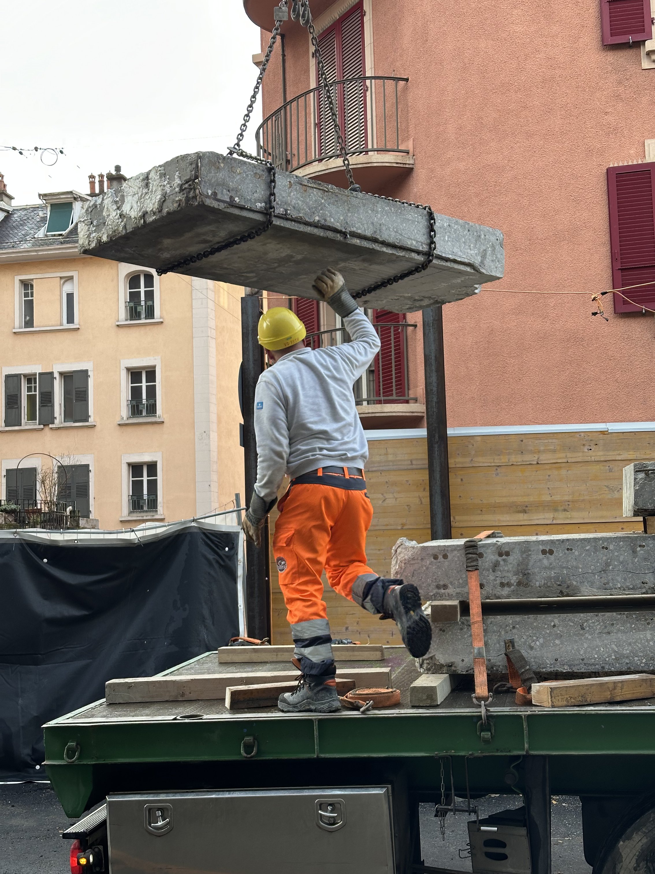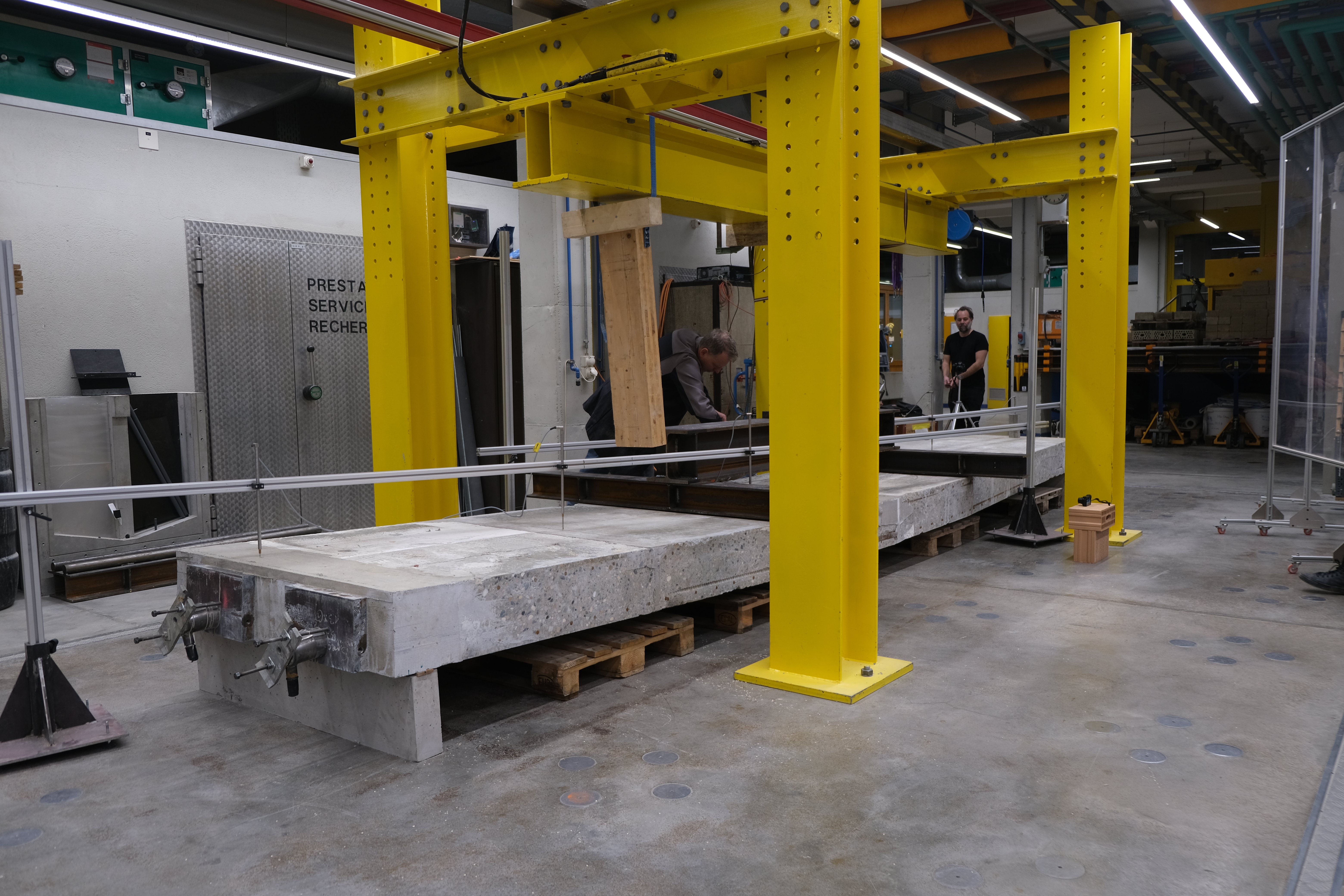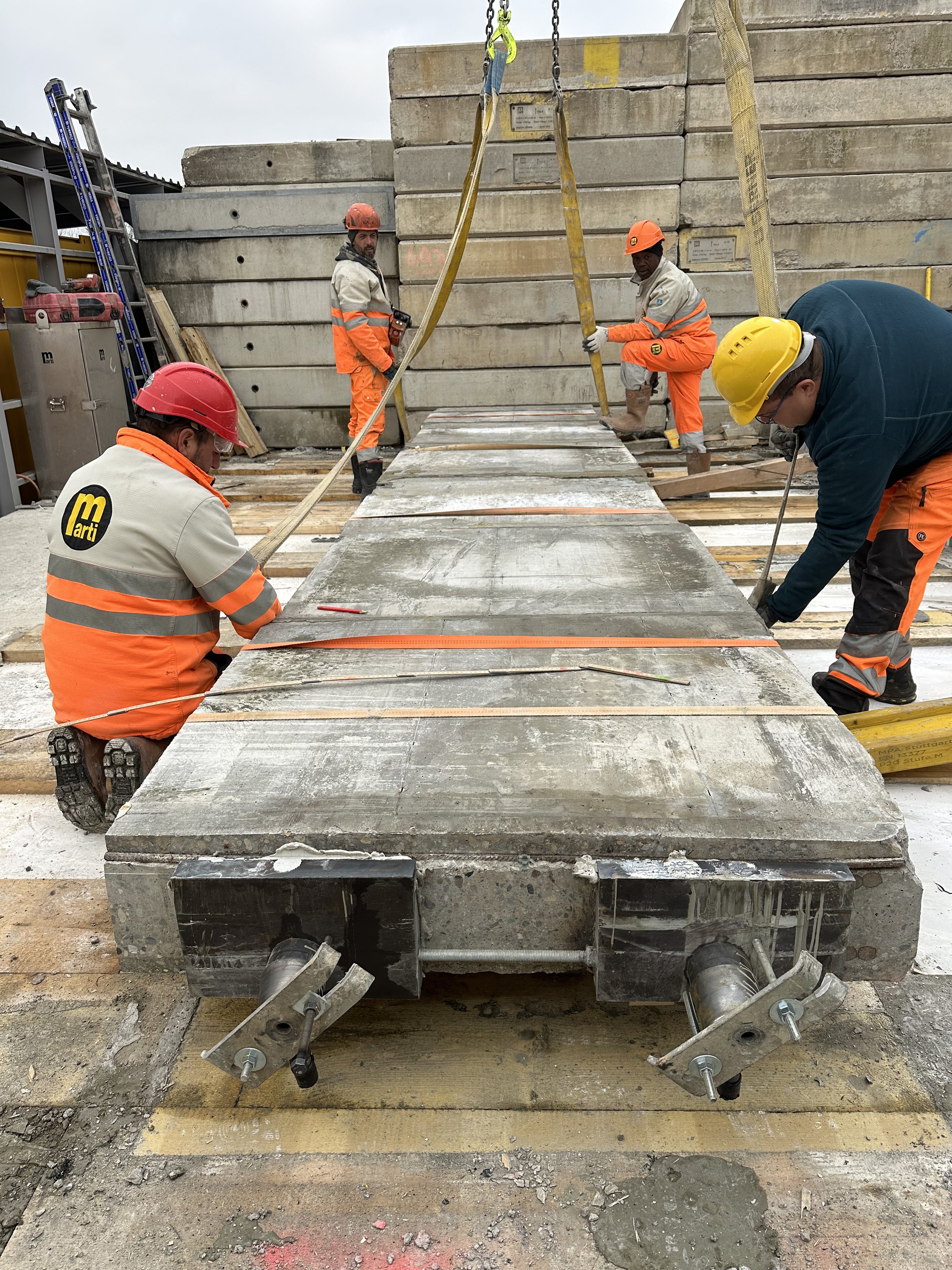 Thanks to the Viva project of the Canton of Vaud and the Circular Economy Support Fund (SPEI), the consortium was able to develop, produce, and test four prototypes: three prestressed segmental slabs made from reclaimed concrete and one from stone. The reclaimed concrete prototypes demonstrated superior mechanical performance (stiffness) compared to new reinforced concrete, achieving over 60% reduction in the slabs’ carbon footprint. This paves the way for circular, low-carbon, and resource-efficient construction.