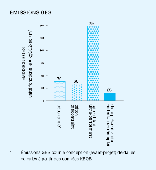 Despite its significant environmental cost, concrete remains unmatched in terms of performance and technical reliability. The structural frame of a new building accounts for about 40 percent of its total carbon footprint[3], especially the slabs, which are among the most challenging elements to decarbonize. While interest in circular and low-carbon solutions is growing, structural reuse of concrete remains rare. Most concrete is either crushed and reused as aggregate in new concrete—a process that does not address the cement-related emissions, which account for roughly 70 percent of its impact[4]or sent to landfill.