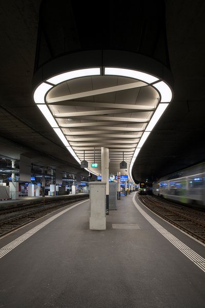 Originally completed in 1974, the platform hall at Bern’s main station is being comprehensively renovated, with completion expected in 2026. All six platforms are being upgraded with modern evacuation and public address systems, improved lighting, and acoustic enhancements—all aimed at improving safety and passenger comfort. SBB is also updating its customer information displays and overhauling the station’s entire wayfinding system.