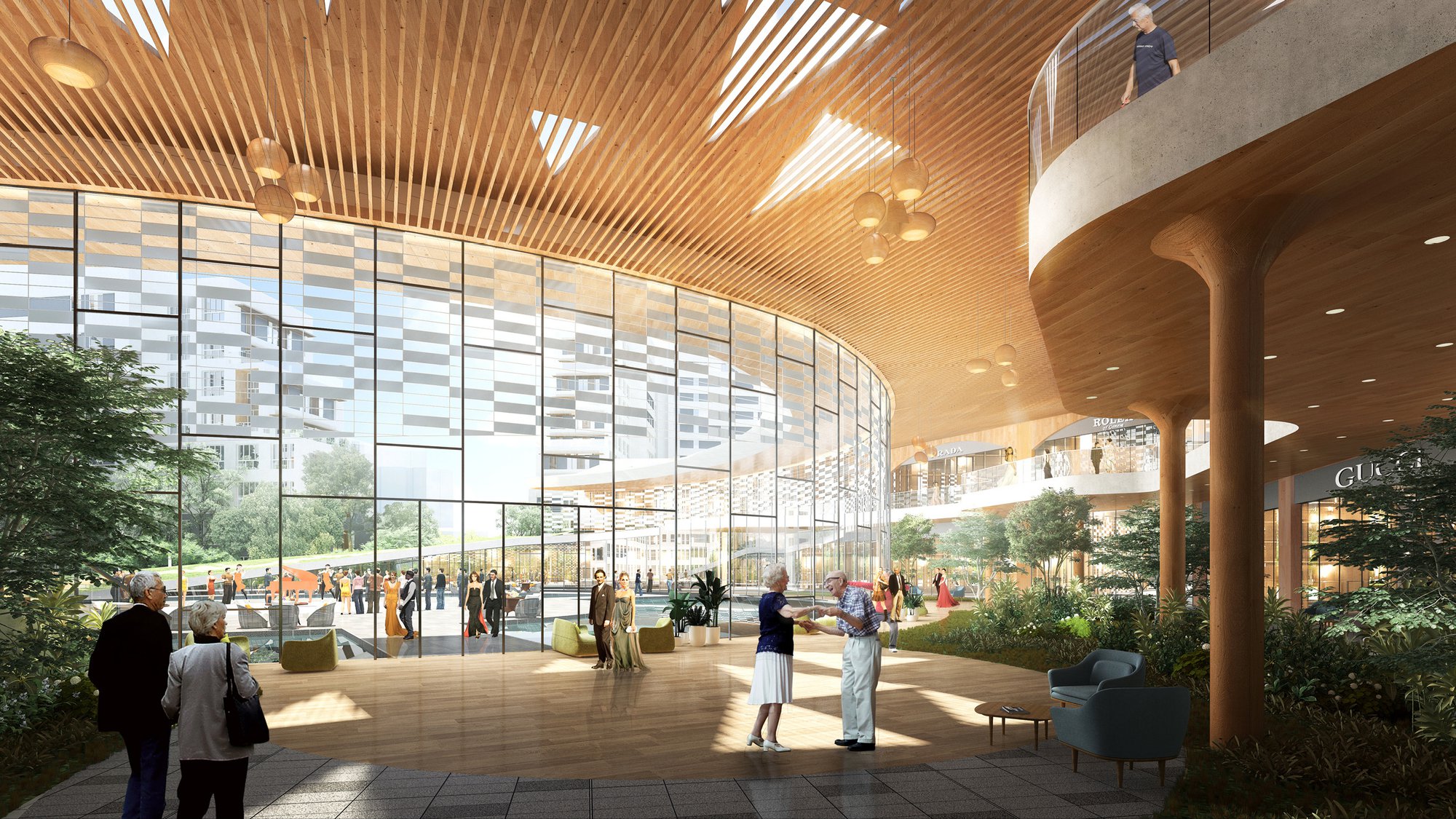 The property comprises apartments for seniors, a senior care center, a clubhouse, commercial and other services.
