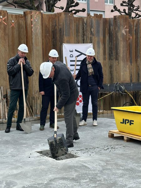 Pour rappel, les prémices du projet remontent à 2021 lors du concours d'architecture remporté par notre bureau. S'en est suivi un démarrage des études, menées en étroite collaboration avec le maitre d'ouvrage, les autorités publiques et l'ensemble des mandataires jusqu'au démarrage du chantier en avril 2025.