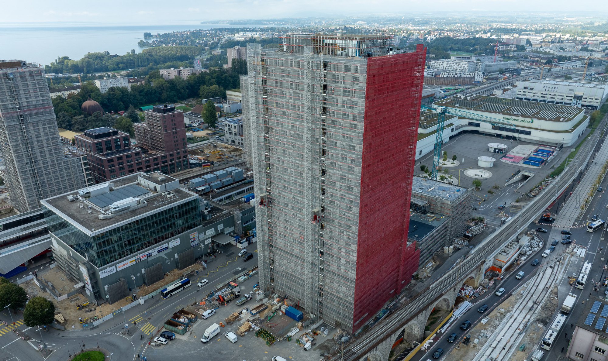 Certifié Minergie-P-ECO et SNBS, le projet repose sur une structure mixte optimisée, une utilisation raisonnée des ressources, et une coordination BIM à grande échelle. Tilia fonctionne à près de 90 % grâce aux énergies renouvelables, notamment via des géostructures énergétiques développées par la start-up GEOEG issue de l’EPFL.