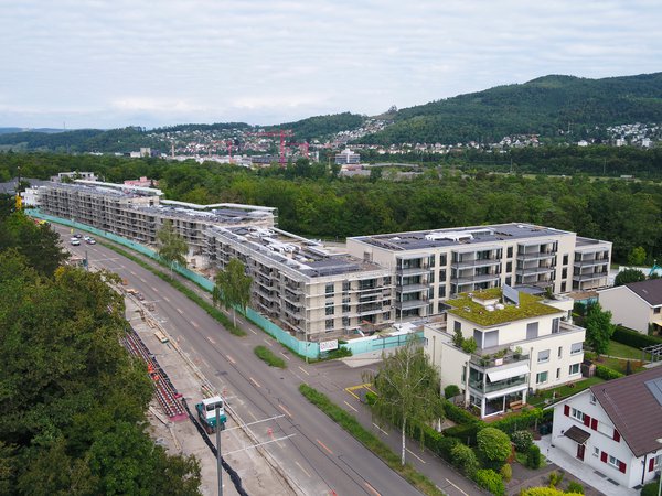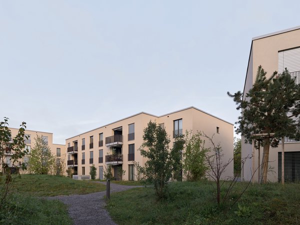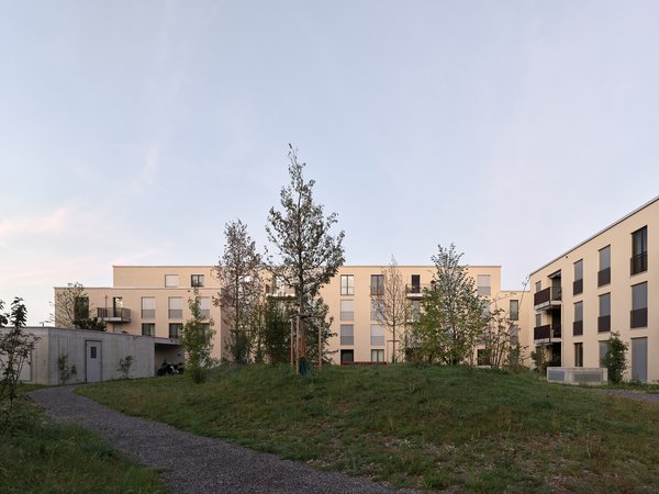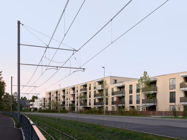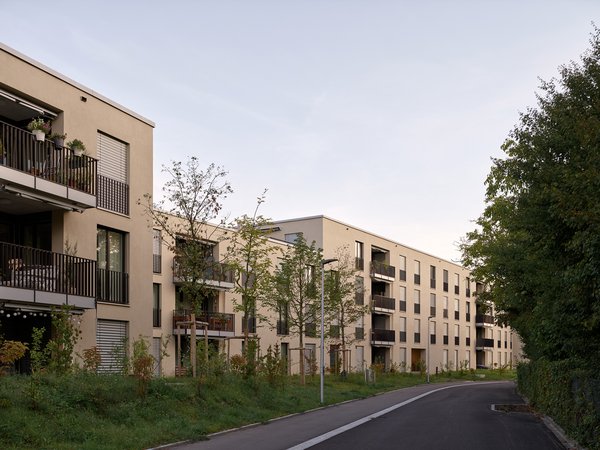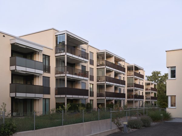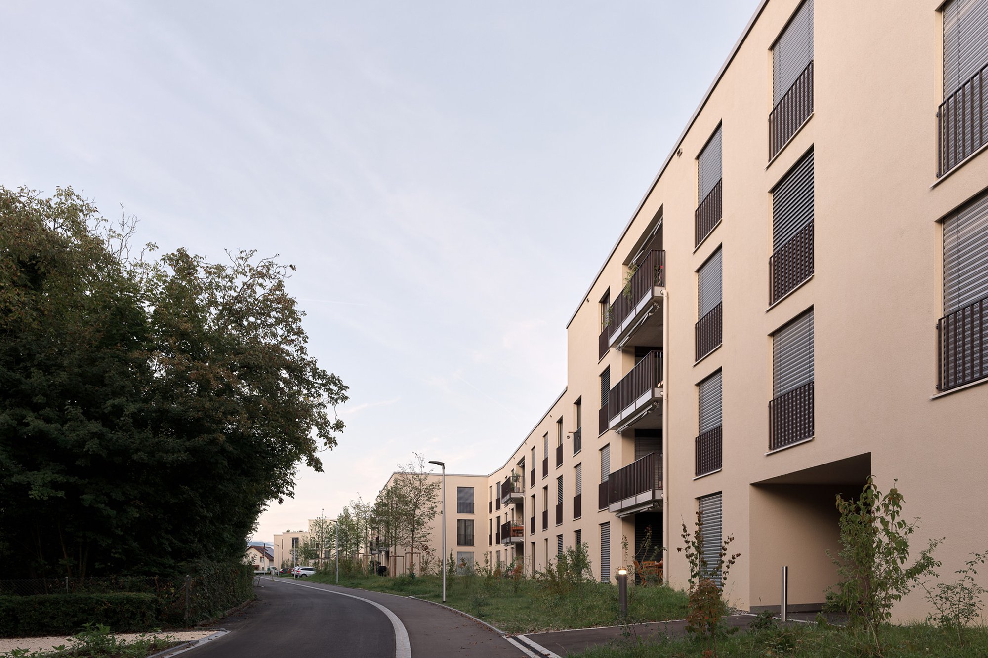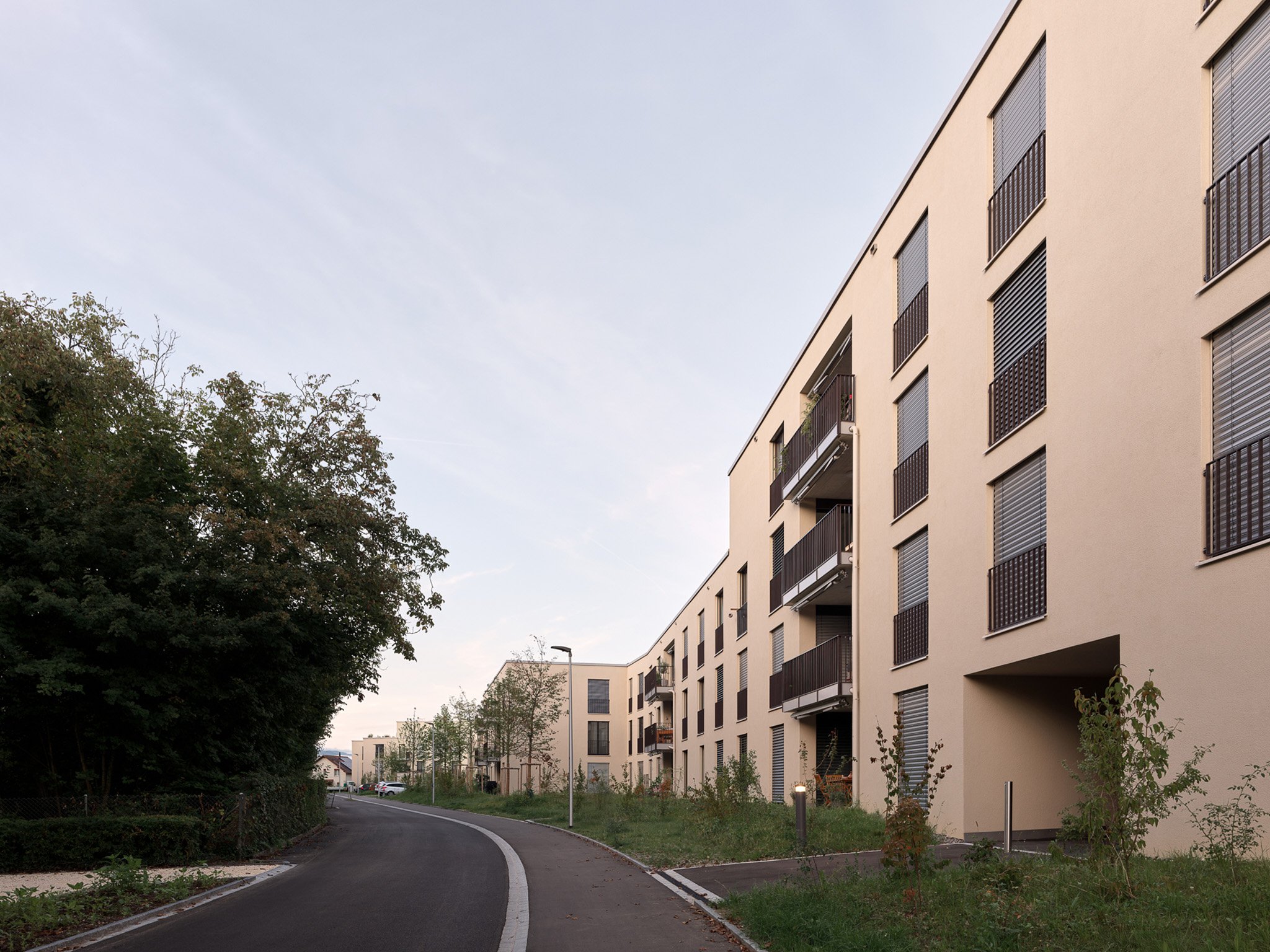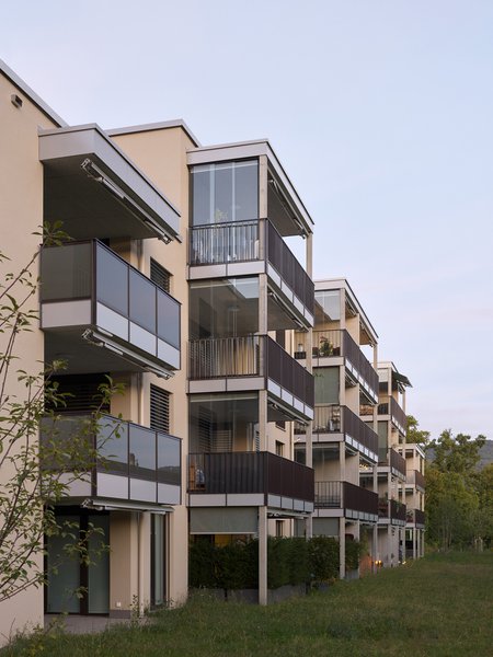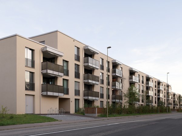 All’insegna della continuità strutturale del luogo, gli edifici si succedono verticalmente ritmati di logge e ampie finestre. Con i loro parapetti chiusi sulla Baselstrasse, le logge garantiscono anche il necessario isolamento acustico.