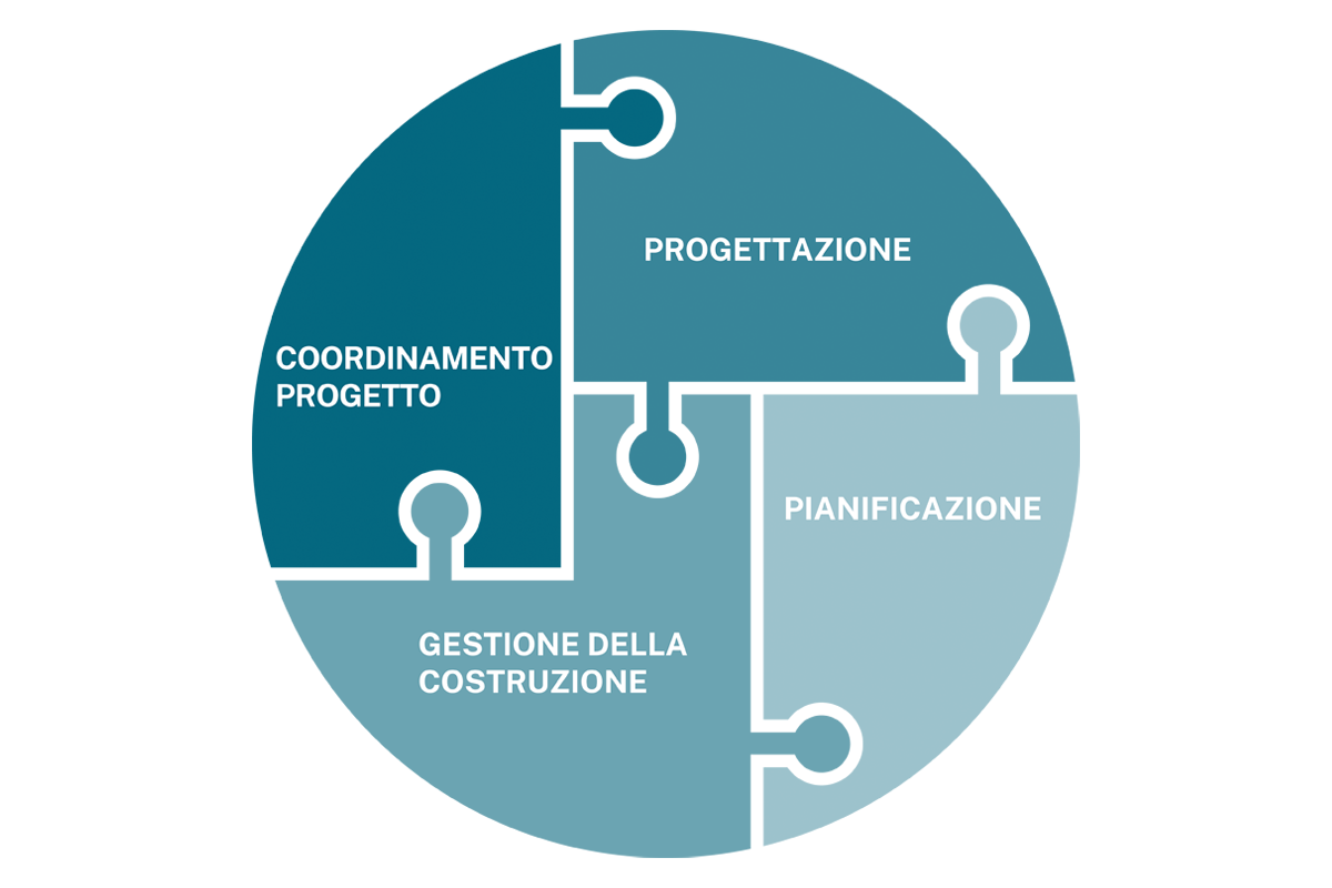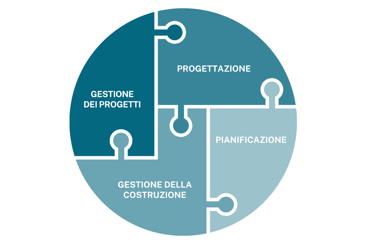 Uniamo progettazione, pianificazione, gestione dei progetti e gestione delle costruzioni in un unico processo continuo e concepiamo l'intero ciclo di vita, dall'idea alla realizzazione fino alla demolizione dell'edificio.